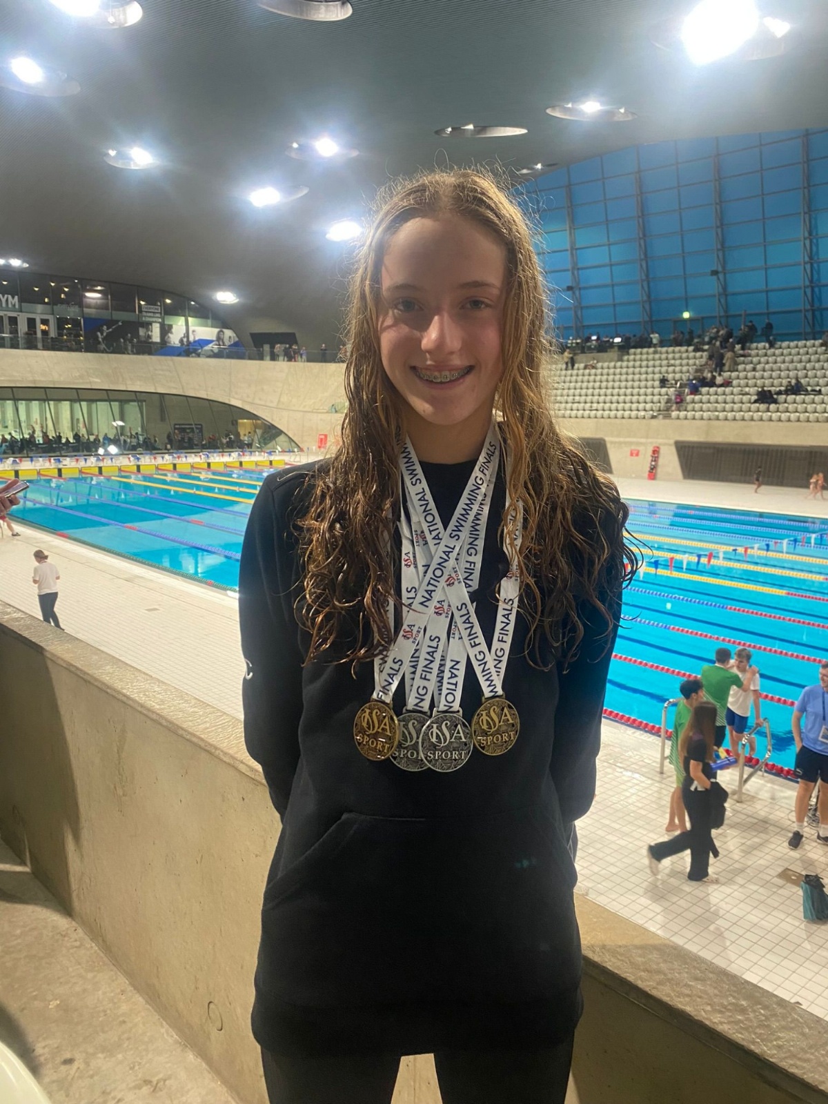 Year 9, Issey, was on fine form, winning Gold in the 100m Breaststroke in 1:16.79 and also in the 4x50m Freestyle Relay in a team time of 1:55.49, then she took Silver in the 200m Individual Medley in 2:29.34 and in the Medley Relay in a team time of 2:11.81.